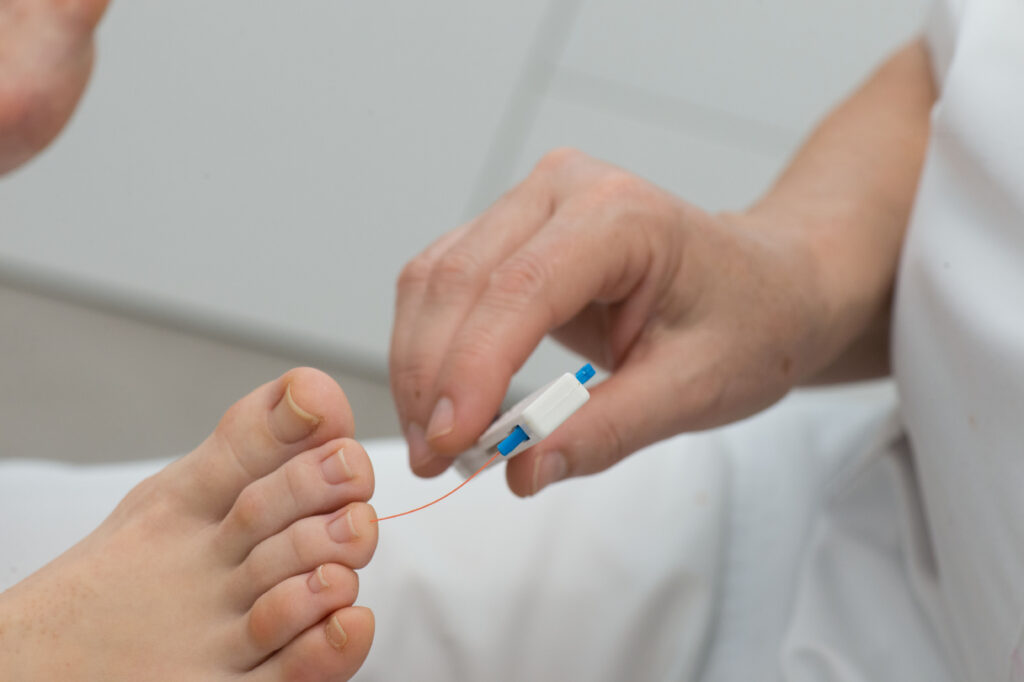 Aplicando técnicas quirúrgicas propias de la cirugía podológica resolvemos la onicocriptosis (uña encarnada) en aquellos casos en los que los tratamientos conservadores no resuelven el problema.