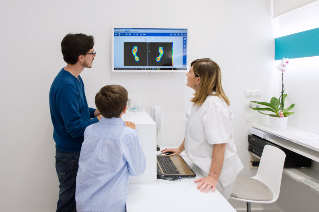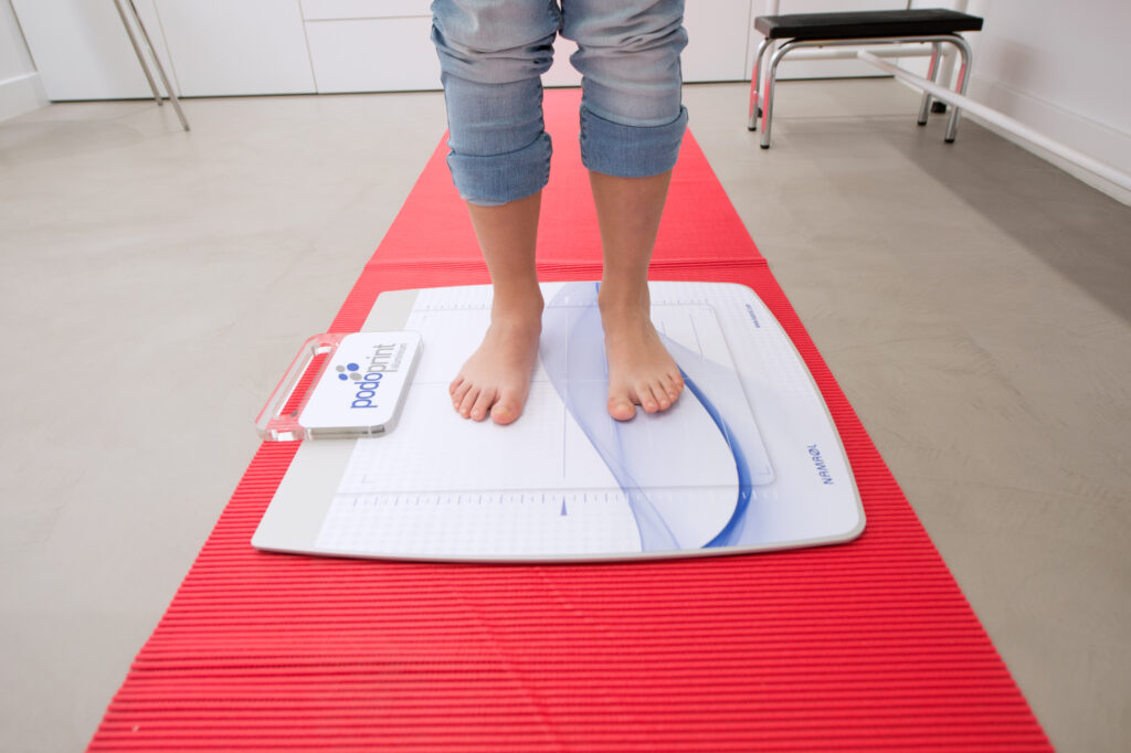 Analizamos el pie en movimiento (en las diferentes fases de la marcha), evaluamos el apoyo del pie, los movimientos de rotación del miembro inferior, y variaciones del centro de gravedad.