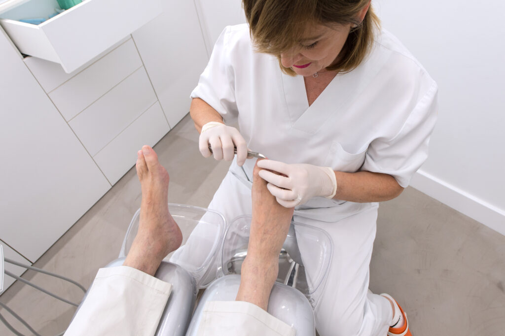 Las revisiones periódicas por su podólogo y el tratamiento de las lesiones de los pies en pacientes diabéticos y de riesgo, mediante la aplicación de protocolos podológicos, nos ayuda a prevenir complicaciones posteriores.